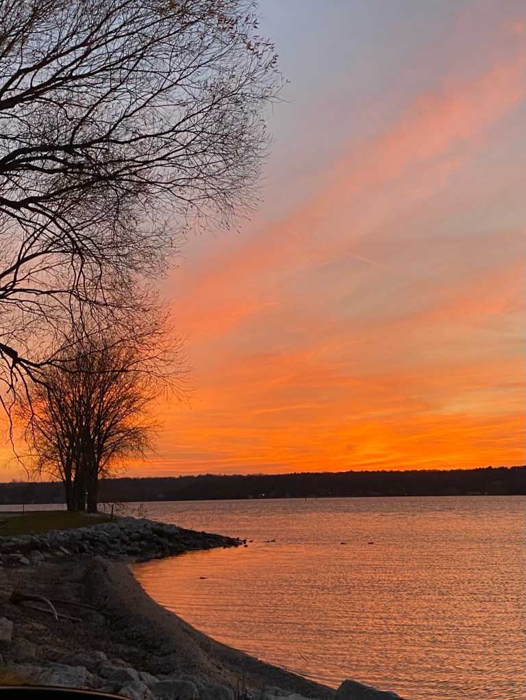 I’ve resisted the urge to whine about the coming of winter. I can’t promise that it won’t happen. But for today, I’m just too busy celebrating the shockingly beautiful weather we’ve had over the last couple of days. Yesterday‘s sunset was spectacular!