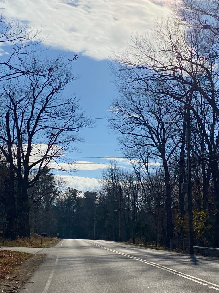 And today, in the north, in November… We reached 65°! That’s just about unheard of. So we had to celebrate by going for a little walk. My husband walks. I roll.