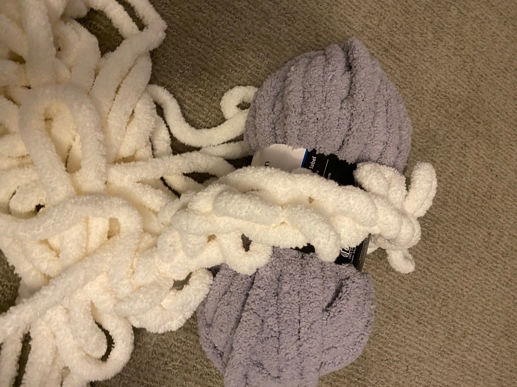And it’s kind of ugly… But I’m proud of it. I was going to rip it apart, but then my husband suggested that I just finish it and we could use it as a cat bed. So that’s what I did. The mistakes are pretty obvious. But just doing it taught me a lot. I figured out some things that I was doing wrong. And now I’m starting a scarf and I’m hoping that I can fix some of those issues… Fingers crossed anyway!