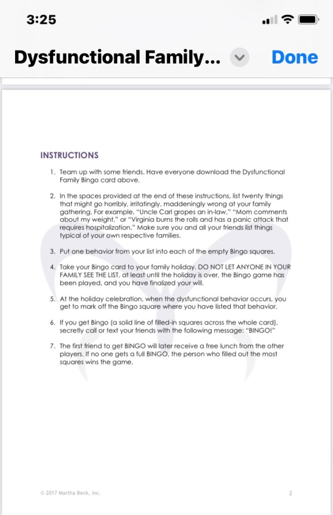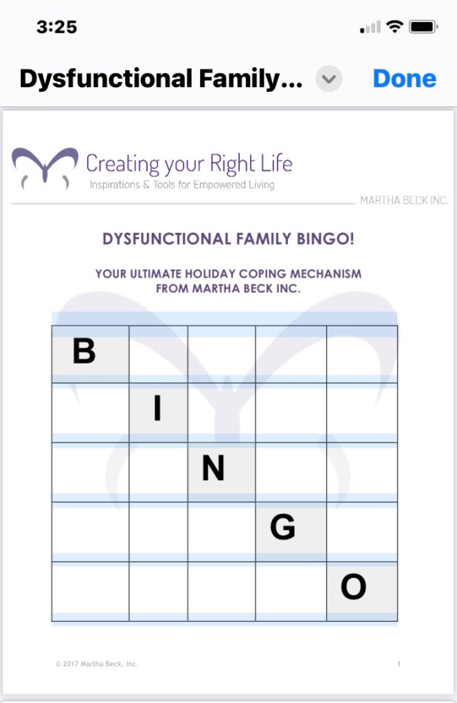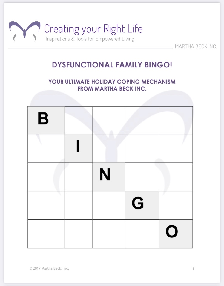 You can see Martha Beck’s blog post about Dysfunctional Family Bingo Here